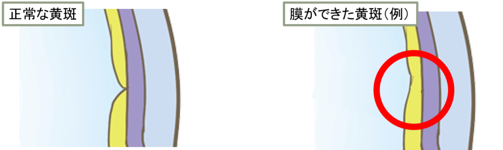 黄斑前膜とは、黄斑の表面に「うすい膜」ができる病気です。